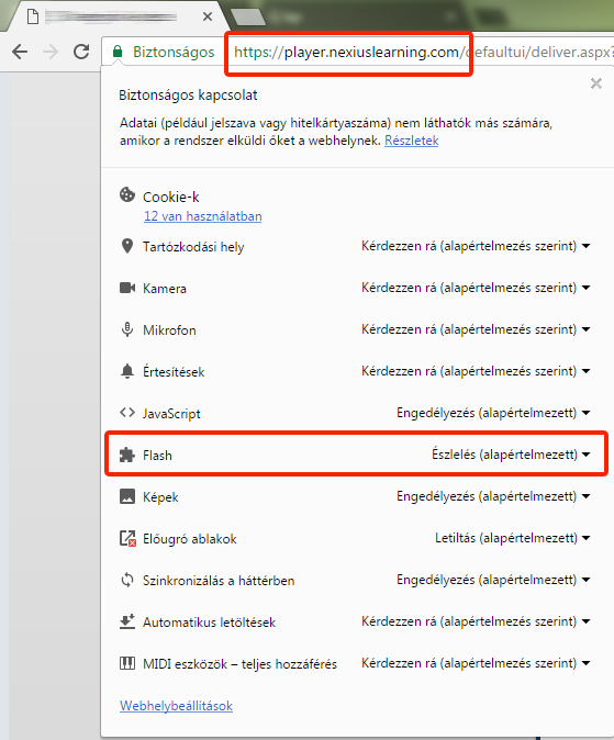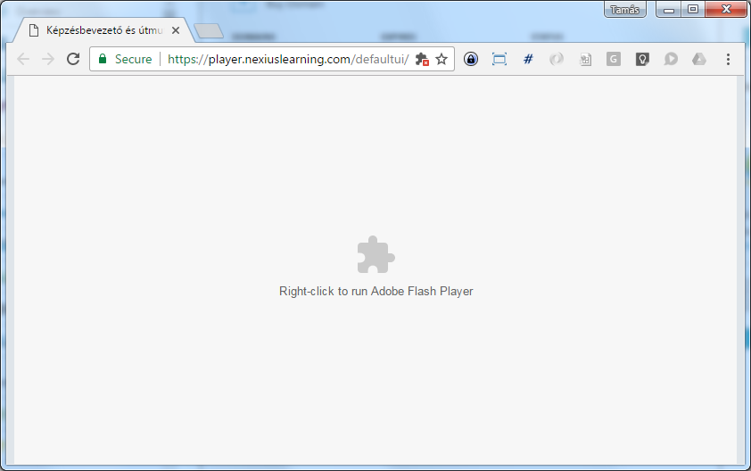 A tananyag indításához ilyenkor engedélyezni kell a Flash-t a tananyagindítás után megjelenő oldalon (https://player.nexiuslearning.com/...).