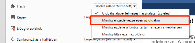- A Flash mellett lévő legördülő menüben válassza ki a