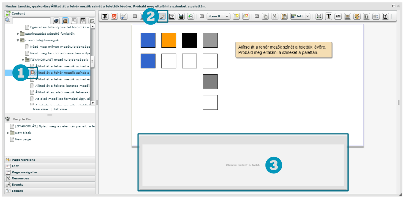 Figyeld meg, hogy amint a szerkesztés gombra kattintasz, megváltozik a struktúrában az oldal ikonja és megjelenik egy mozgatható ún. tulajdonságok ablak az oldal alján.