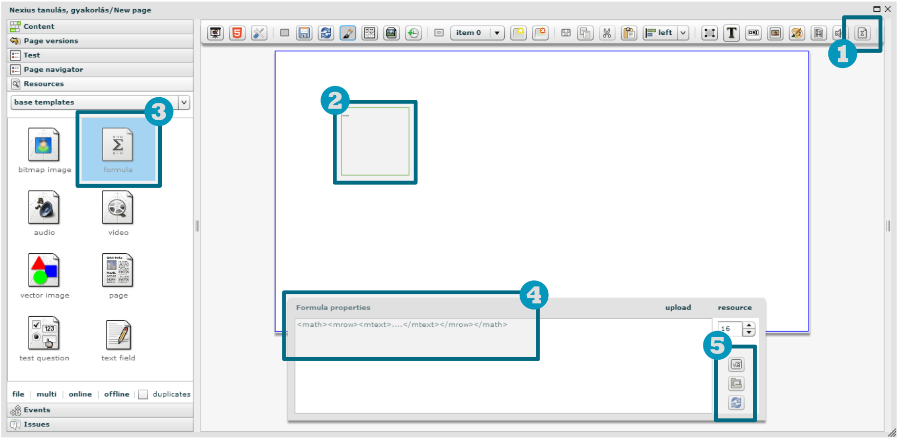 Lehetőség van MathML szintakszison alapuló képleteket beilleszteni és megjeleníteni. A képletek szerkesztéséhez első lépésként egy formula (képlet) mezőt kell elhelyezni az oldalon, majd abba kell beilleszteni a kívánt matematikai kifejezést. A képlet megadásának jelenleg három módja lehetséges: