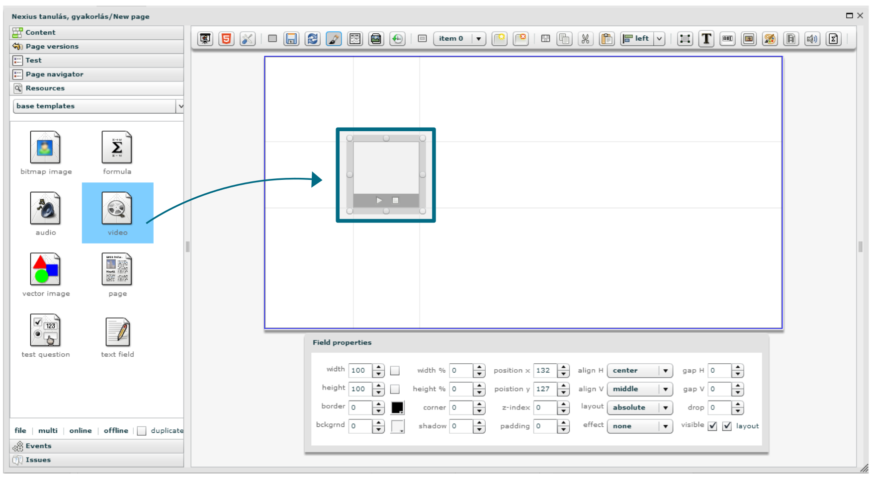 Húzz be az alapsablonok közül egy videót az oldaladra.