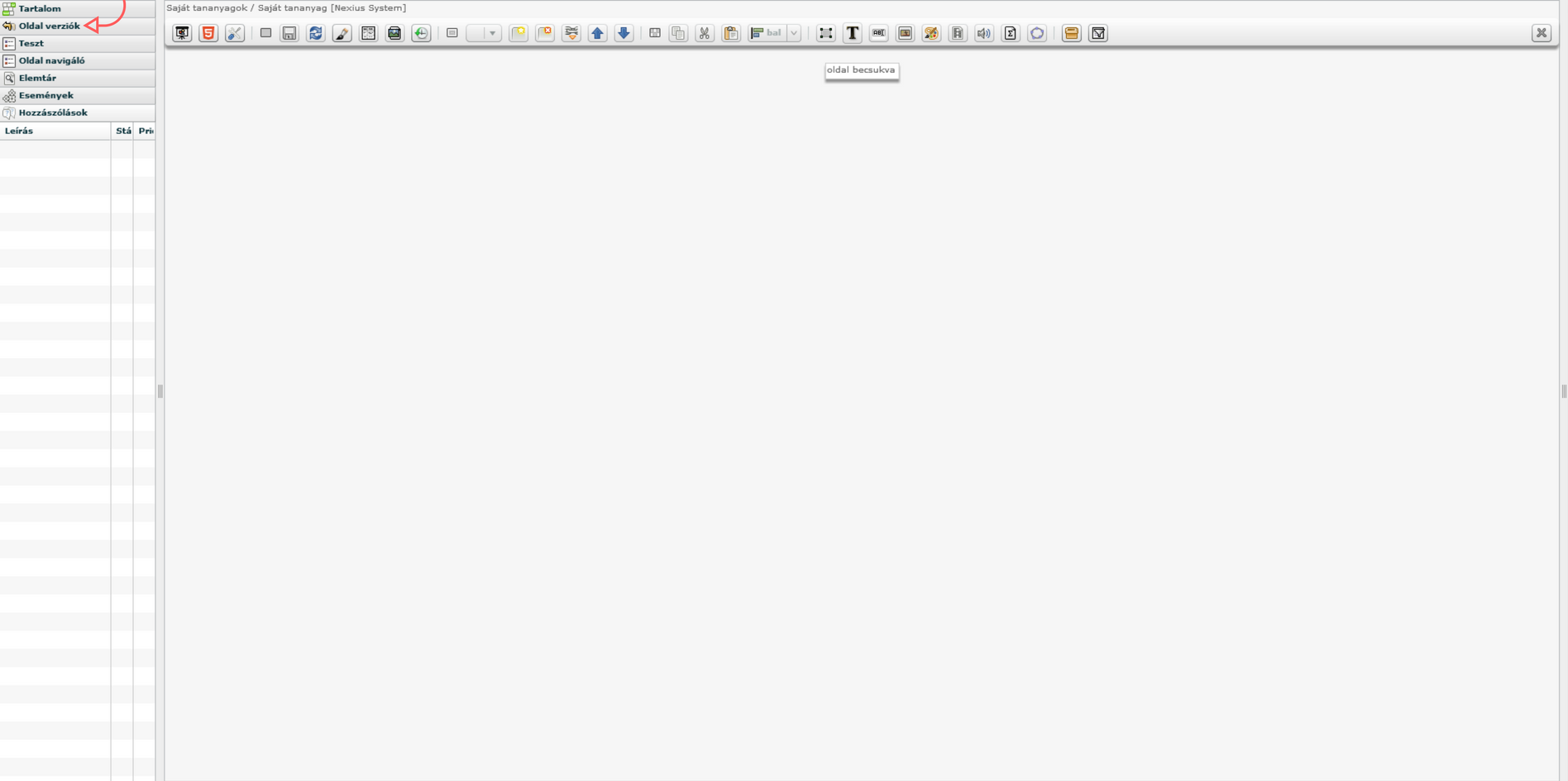 Korábbi verziókat visszaállítani az Oldal verziók / Page versions fülön lehet, amit az eszköztár Oldalverziók ikonjára kattintva, vagy a baloldali panelek közül kiválasztva tudsz megnyitni.
