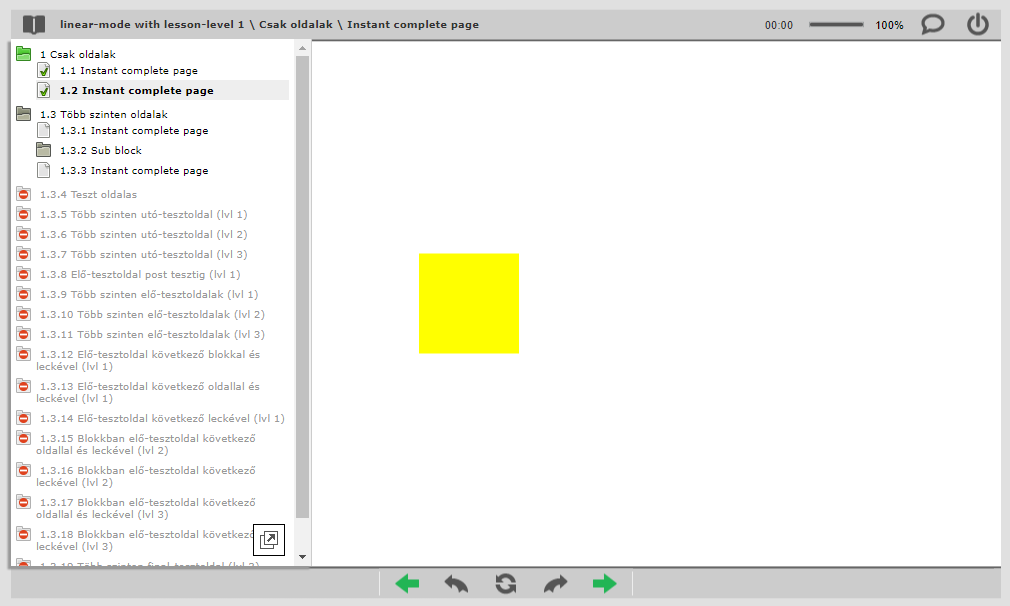 Ha ezt a módot állítjuk be, akkor leckén belül szabadon bejárhatóak az oldalak, viszont a leckék csak abban a sorrendben járhatóak be, ahogy a struktúrában követik egymást, azaz leckén belül minden oldalnak teljesítetté kell válni ahhoz, hogy tovább lehessen lépni a következő leckére. Ebben az esetben a tanuló sem a tartalomjegyzék, sem a tanulói felület láblécében található nyilak segítségével nem tud navigálni a még nem teljesített leckék oldalaira, viszont szabadon navigálhat a már teljesített leckék oldalai, és az aktuális lecke oldalai között.