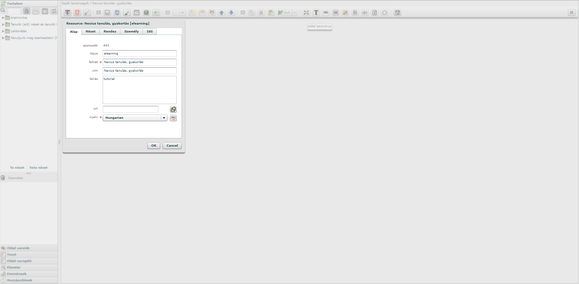 A felugró ablakban a tananyag címe alatt az alábbi beállításokat kell megadni: