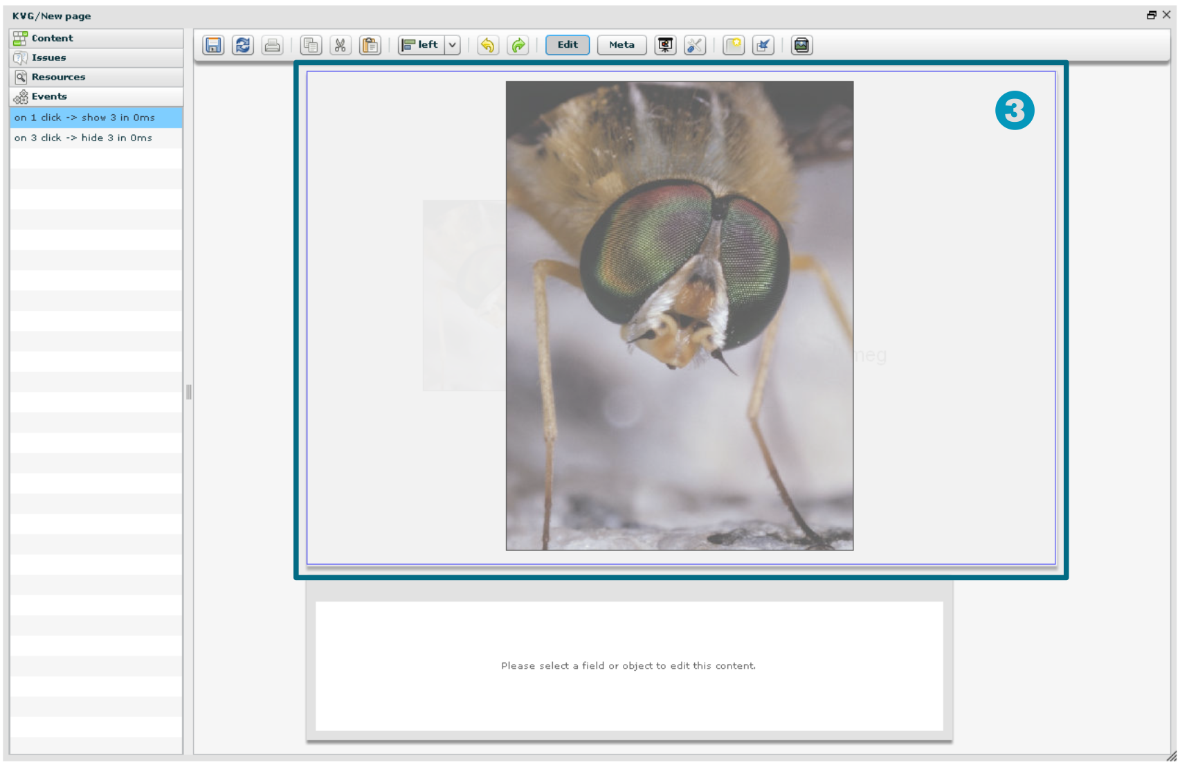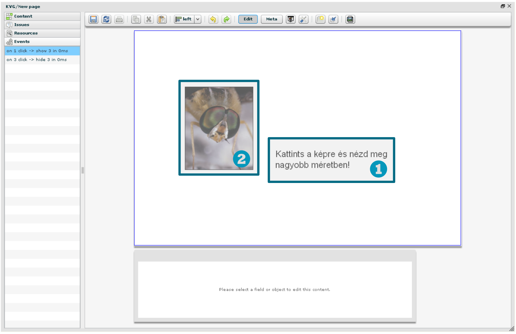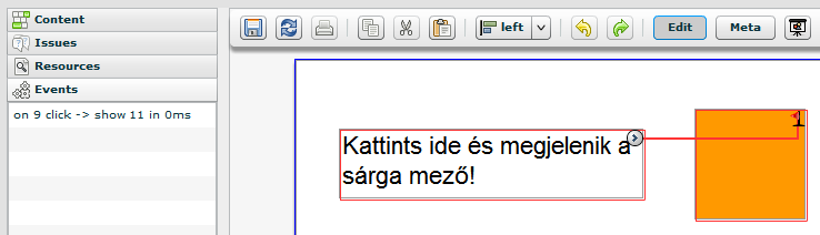 Tanuláskor az eseményekben részt vevő mezők kattintásra, szerkesztői üzemmódban azonban CTRL + kattintásra jelennek meg. Erre értelemszerűen azért van szükség, hogy meg legyen különböztetve a mező kijelölése művelet az esemény beindításától.