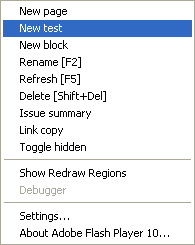 Kattints a content fülön a jobb egérgombra és csinálj egy tesztoldalt. Kattints a „New test”-re: