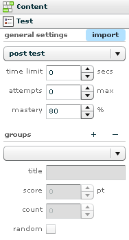 A teszt importálás közben a kategória category és a nyelv language metaadatok öröklődnek az a teszt oldal metaadat beállításaiból, ami minden esetben felveszi a tananyag kategóriájátját.