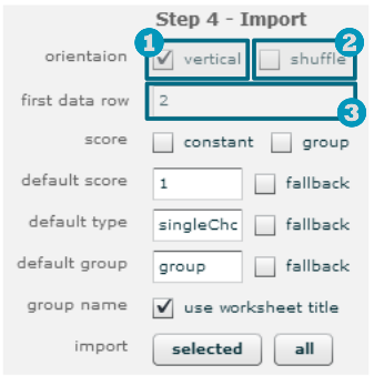 orientation: A vertical kipipálása esetén az importáló a kérdéshez kapcsolódó válaszlehetőségeket az oszlopokban fogja keresni és nem a sorokban.