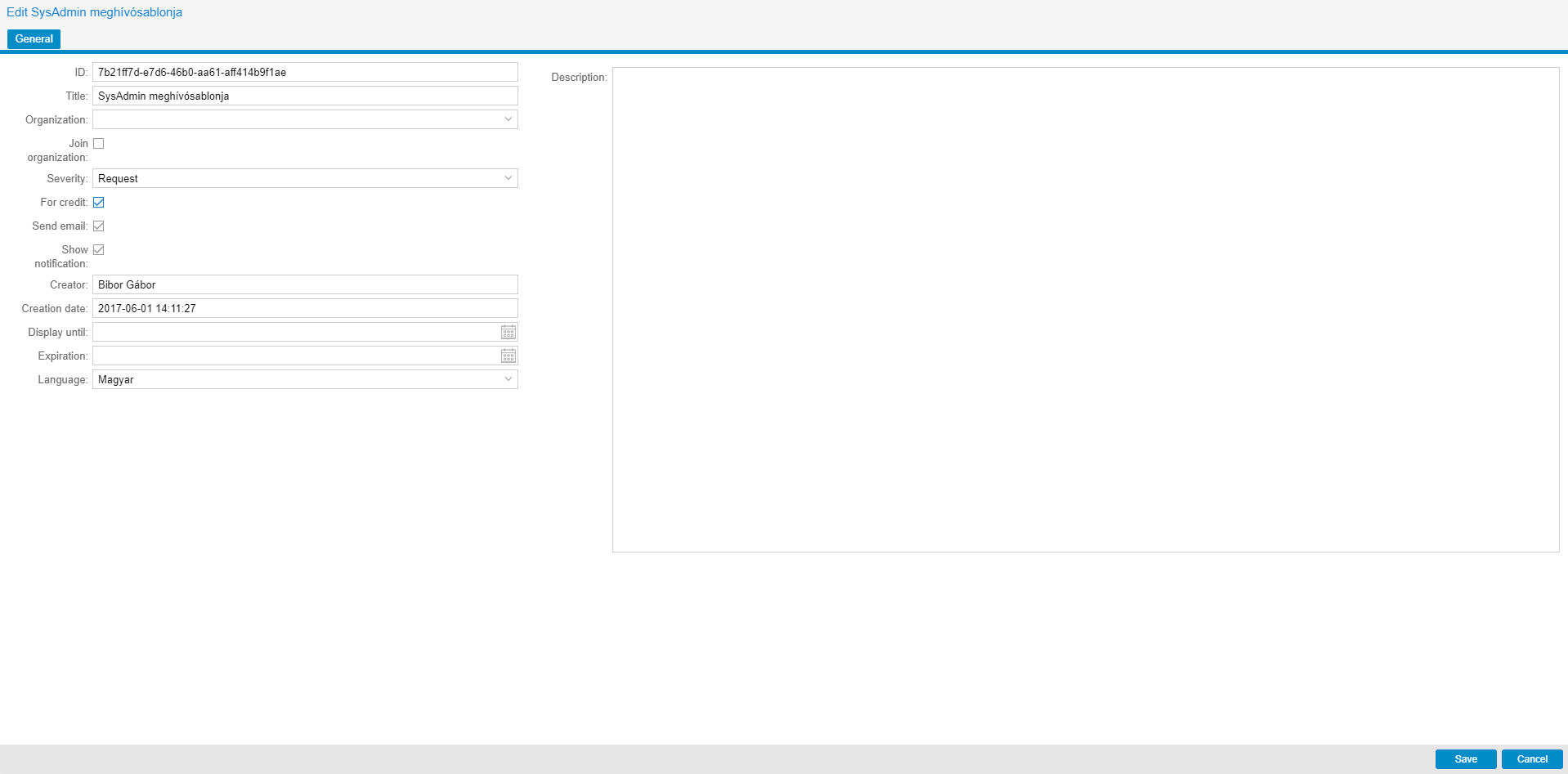 szolgáltató szervezetének adminisztrátora, valamintterméktámogatóivagyrendszeradminisztrátorijogosultsággal rendelkező felhasználó felülírhatja. A meghívót elfogadó tanulók a meghívónál beállított értékkel iratkoznak be a kurzusra.Ügyfélszervezet adminisztrátoracsak a kurzushoz megadott értékkel egyező paraméterű meghívósablont tud létrehozni, de korábban létrehozott meghívósablont annak hitelességétől függetlenül kiküldhet.