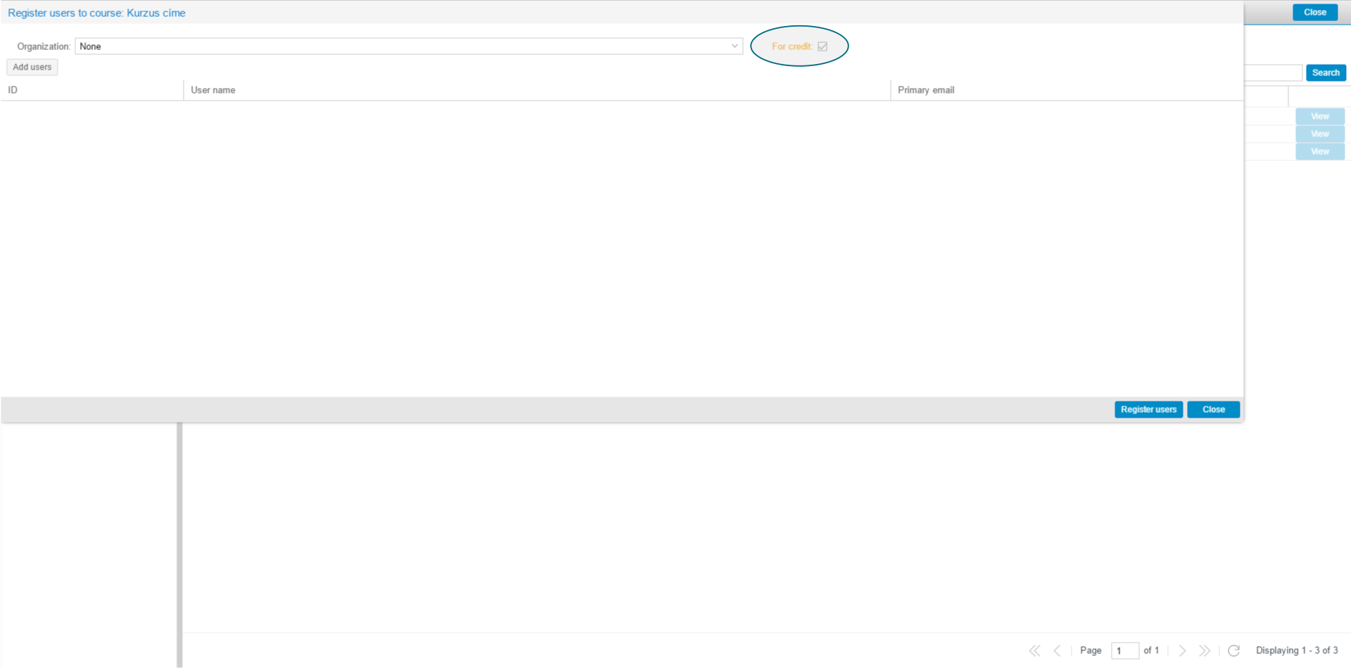 A beiratkozás hivatalosságát a beiratkozás hiteles mód / for credit értékével lehet beállítani. Ez a hivatalosság két dologra hat: a tananyag beállításaitól függően hatással lehet a tananyag működésére, emellett a kurzusban keletkező adatokat meg lehet tekinteni külön a hivatalosan és a nem hivatalosan résztvevő tanulókra is.