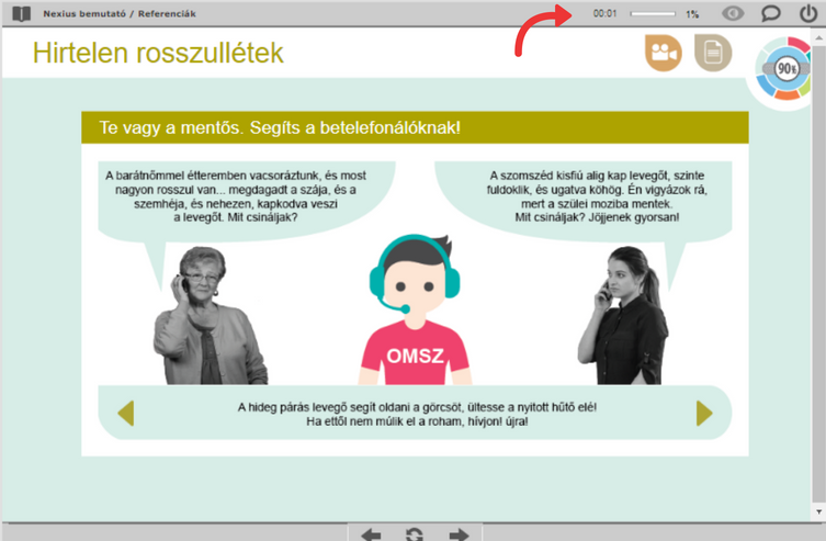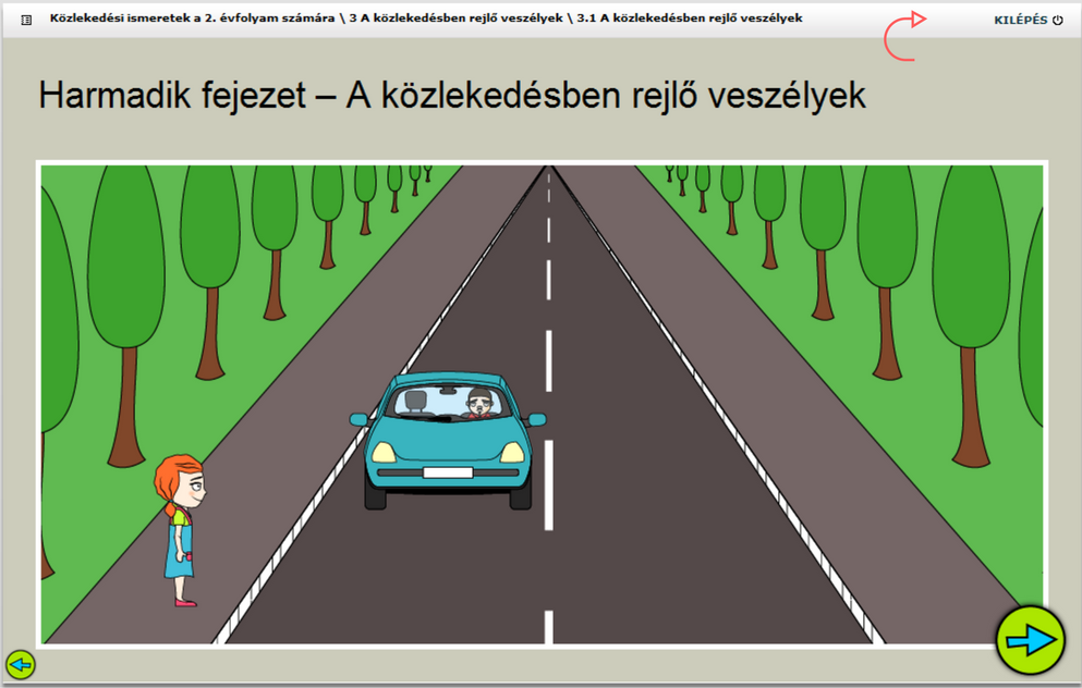• Kilépés gomb, amellyel a tanuló bezárja a tananyagot. A lejátszó ilyenkor elmenti a haladási adatokat, és következő megnyitáskor a kilépés helyéről folytathatja a tanuló a tanulást.
